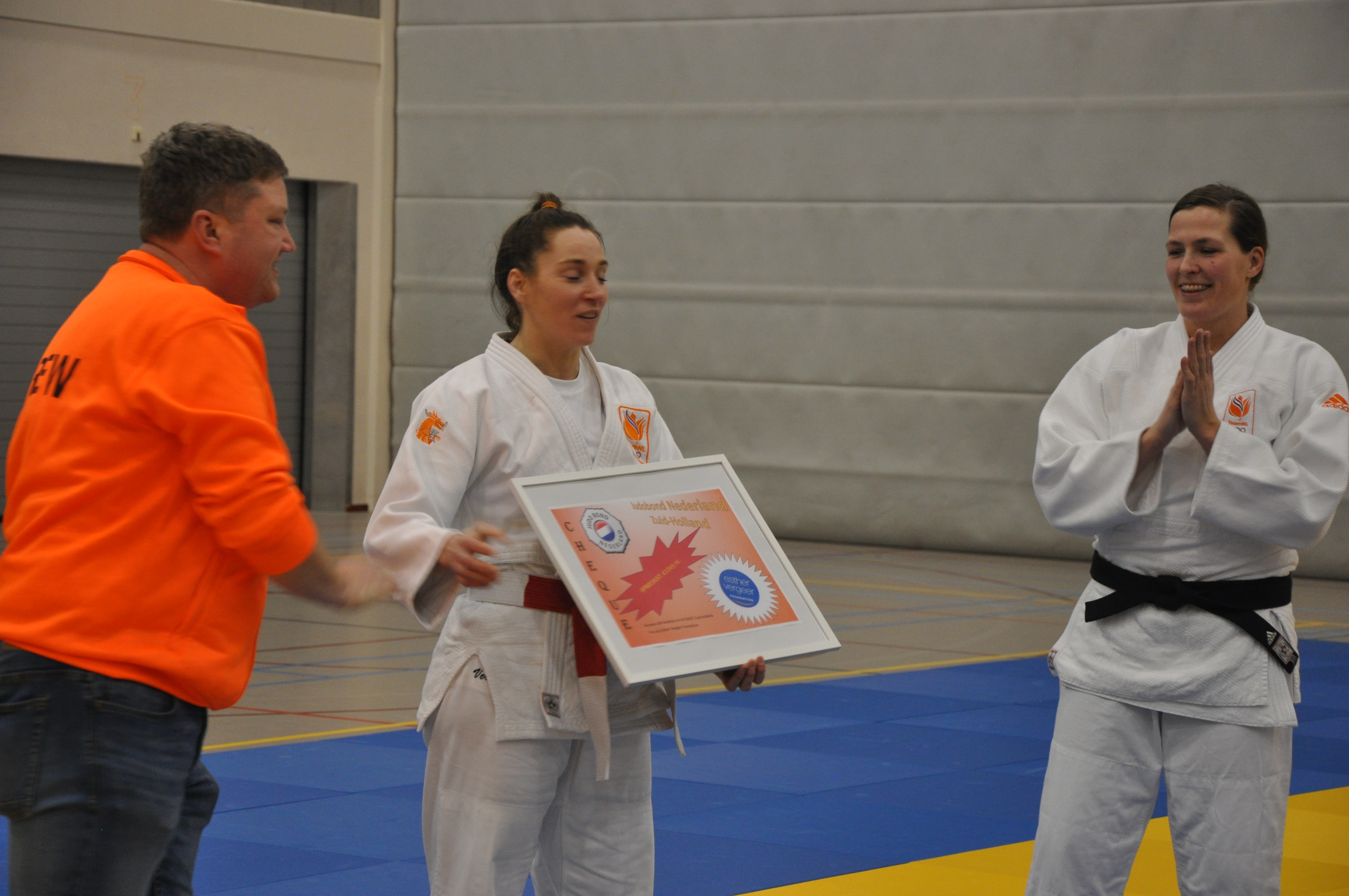 Tot slot sloten Marhinde Verkerk en Tessie Savelkouls de dag af met nog eens een clinic van ruim 50 minuten judo en aangezien Marhinde ambassadrice is voor de Esther Vergeer Foundation, heeft zij de cheque met een prachtig bedrag van € 1549,16 in ontvangst genomen.